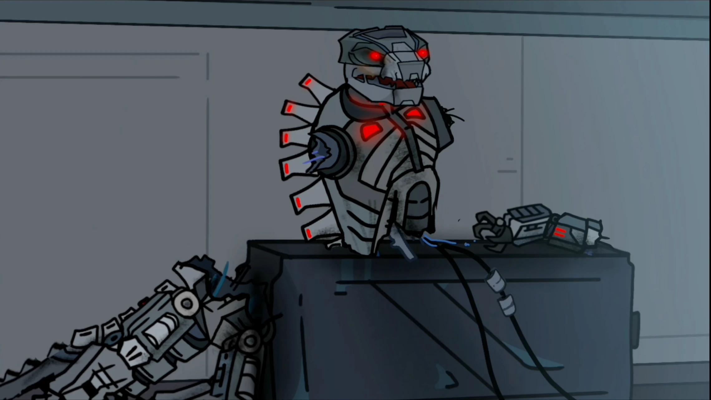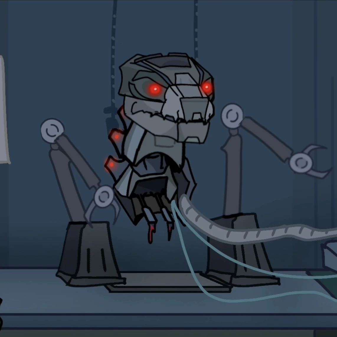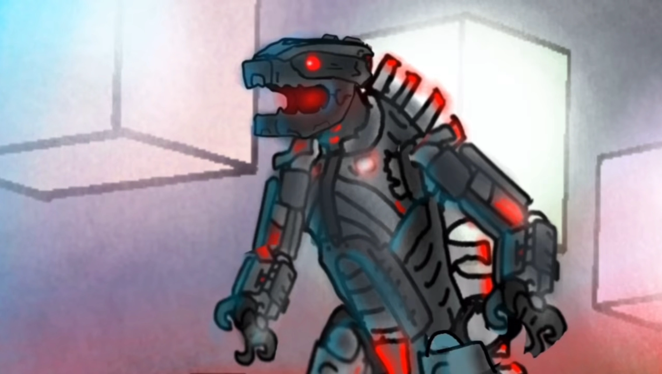 Mechagodzilla (2021) or just called Mechagodzillla is a major character of Blunt Brothers Productions series Triangle vs. Monkey, being was a former minor antagonist and then turned into a minor but important deuteragonist. He's originated from the Monsterverse Universe, but followed Triangle and Monkey to the Concepts Domain. After having arm blown off he redeems himself when he found Triangle beaten by Prime Mecha Triangle and helps him, Monkey and Noodle Neck stop Project Reset.